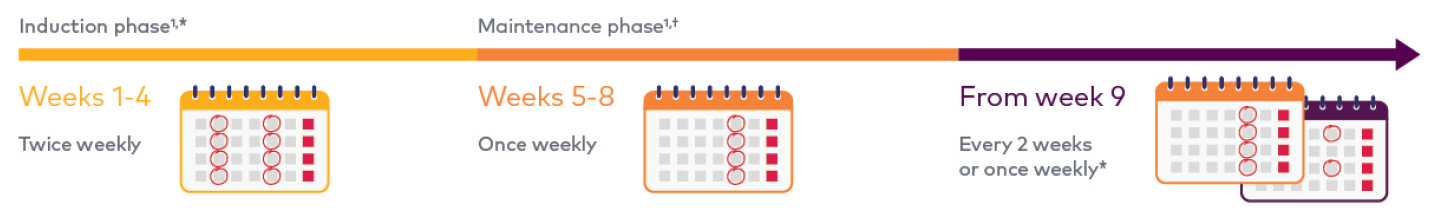Esketamine nasal spray is self-administered by patient under supervision by healthcare provider. Each device delivers a total of 28 mg, in two sprays (one per nostril). For the first 4 weeks, patients need to take it twice a week. For the next 4 weeks, patients would need to take it once a week. Thereafter, patients can take it once a week or every two weeks. If necessary, the doctor can reduce or increase the dose at each course of treatment according to the patient's condition to maintain the response to treatment.