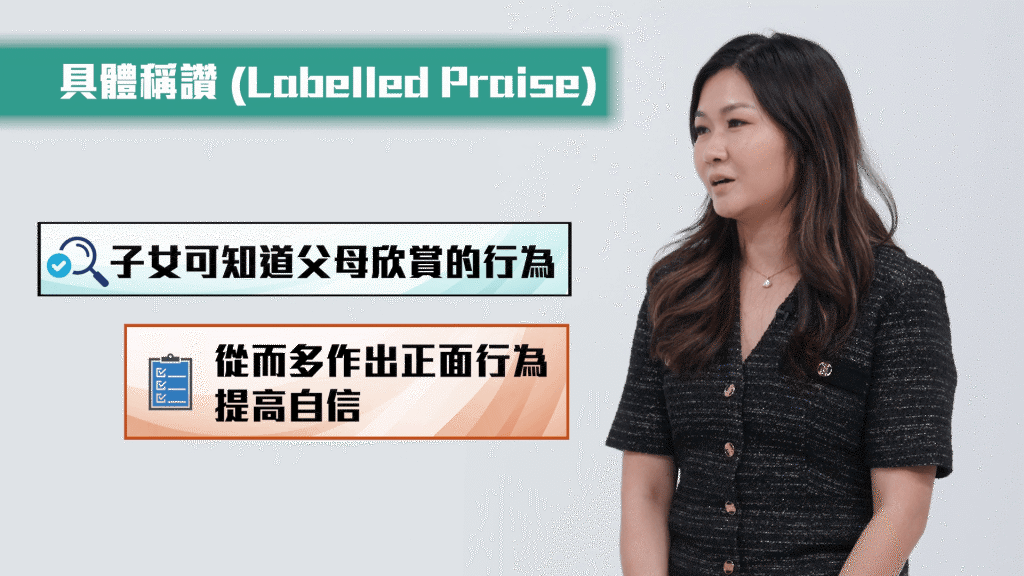 勞靄晞建議家長多對子女作「具體稱讚」。