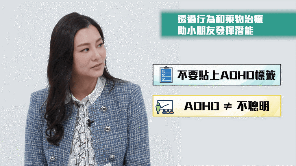 精神科顧問醫生董家懿強調不要為小朋友貼上ADHD標籤,因為有ADHD不代表不聰明,而專科團隊的治療方向和目標,就是結合行為治療和藥物治療,讓小朋友可以在能力範圍內好好發揮潛能。