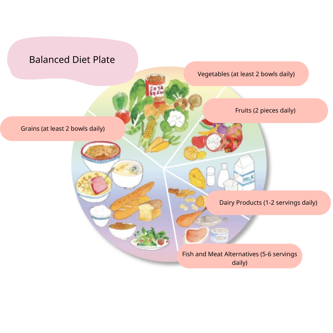 Counting calories is not the most effective way to lose weight. Refer to the "Balanced Diet Plate" for the recommended portioning in a healthy balanced diet!
