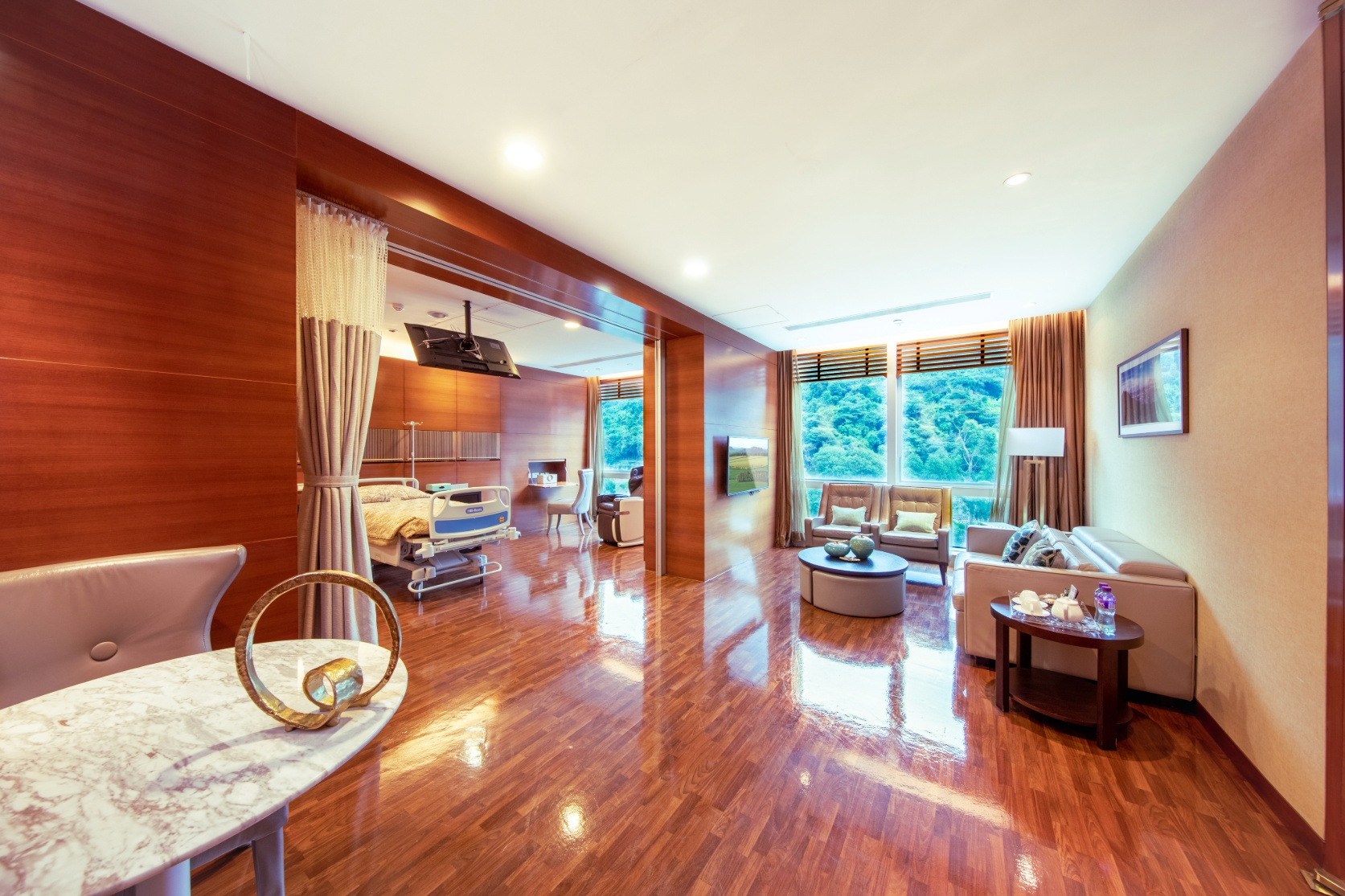 Designed for comfort, each spacious suite features elegant furnishings. With a private bathroom and living room, you can indulge in a serene and secluded atmosphere, making it the perfect retreat for a relaxing recovery.