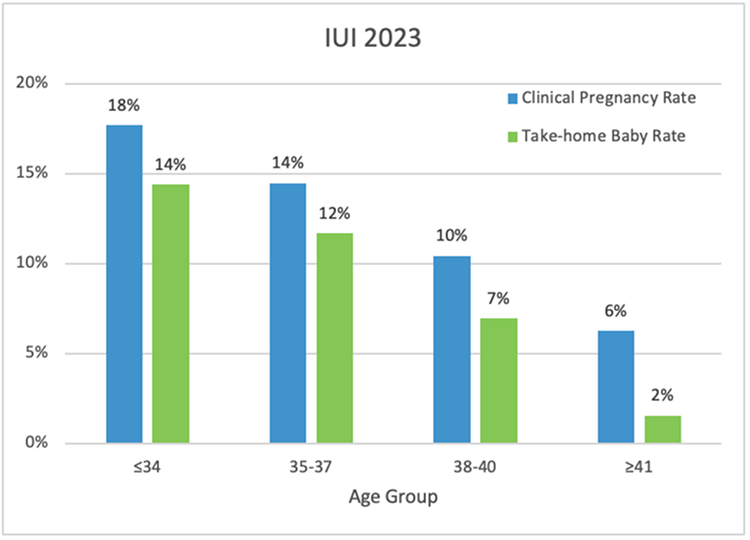 In 2023, the overall take-home baby rate of IUI in our centre was 11%. The take-home baby rate of IUI of different age groups is as follows.
