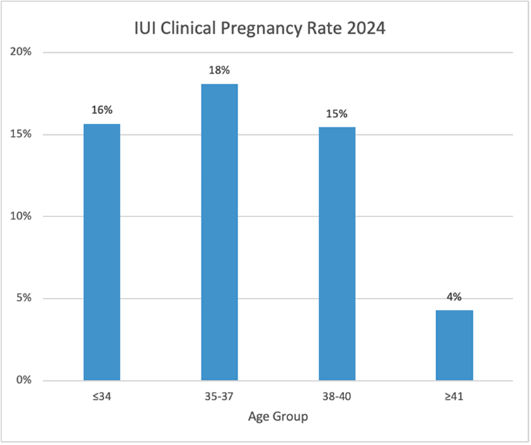 In 2024, our IUI success rate stood at 15%. Women aged 34 and under achieved an 16% success rate, whereas those over 41 had a success rate of just 4%. These statistics highlight the influence of age on fertility success, allowing us to provide better support.