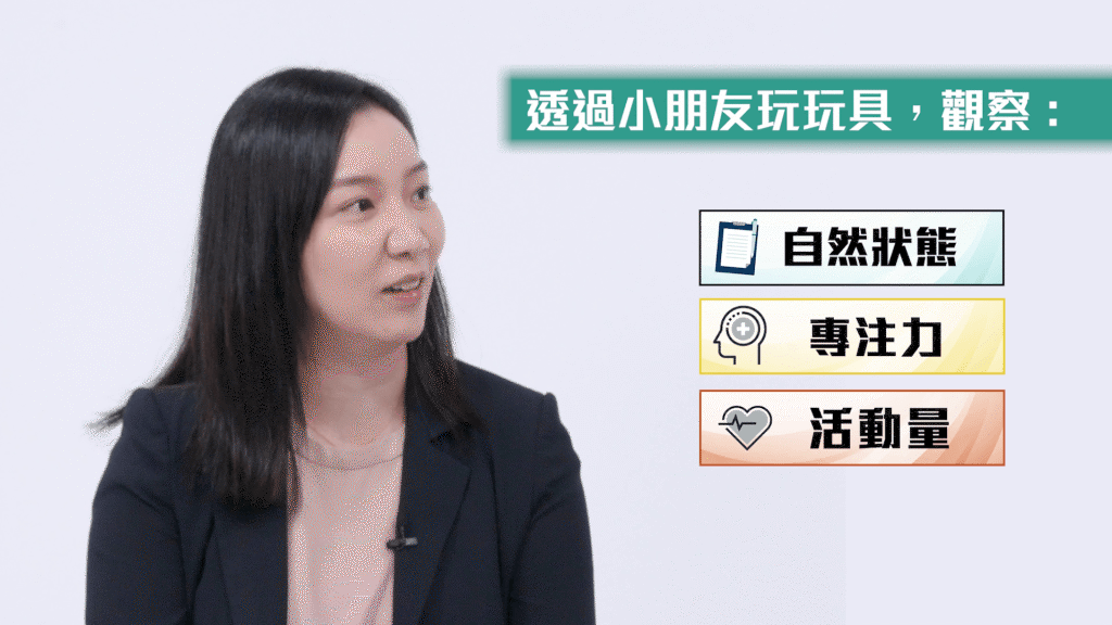 利雪兒指評估中會透過小朋友玩玩具,觀察他們的專注力水平。