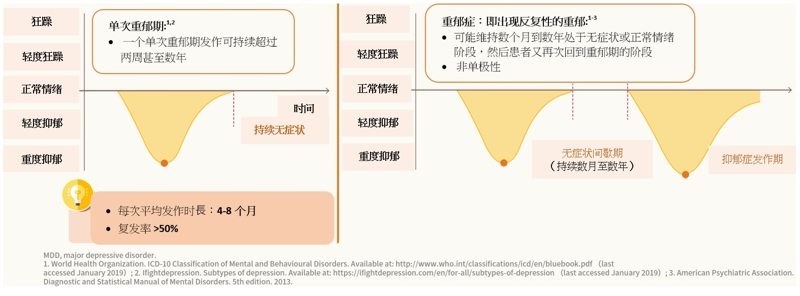 抑郁症有不同严重程度,可以分为轻微、中度和严重。个案当中有三分之一会演变为顽治型抑郁症,即曾使用两种或以上抗抑郁药且治疗效果欠佳。